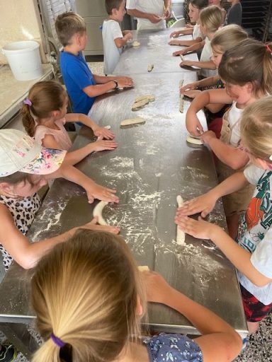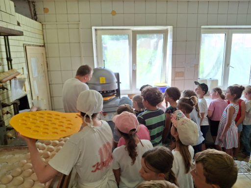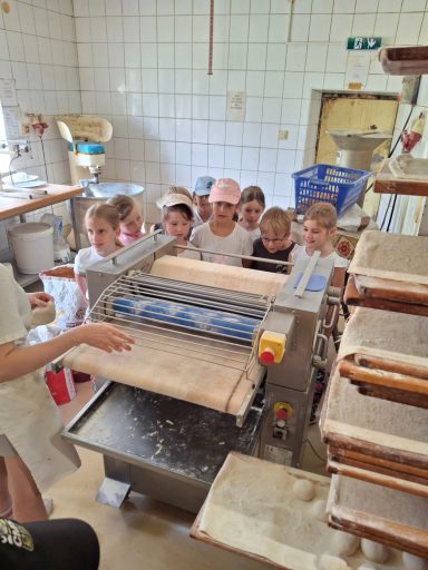 Mit großer Neugier erkundeten sie die verschiedenen Geräte und Maschinen in der Backstube. Besonders begeistert waren die Kinder, als sie selbst Hand anlegen durften: Aus vorbereiteten Teigstücken formten sie ihre eigenen Weckerl – jedes ein kleines Kunstwerk!