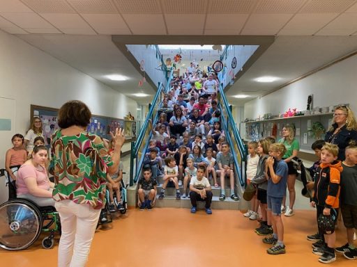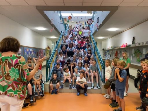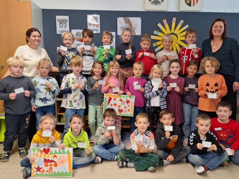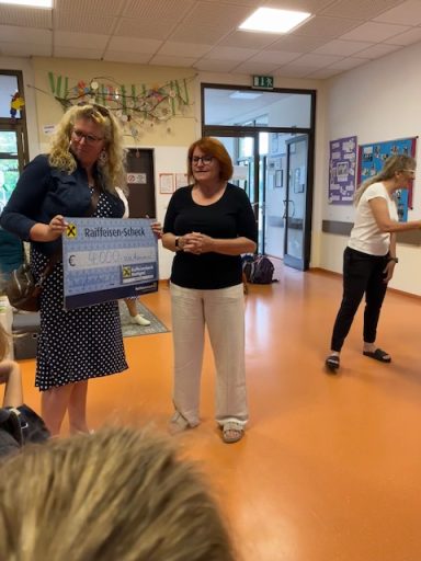 So ergibt sich der großartige Betrag von 4000 € den, die Kinder bei einem Besuch in der Pestalozzischule an die Kinder und das Lehrer:innen Team in Braunau weitergeben können.