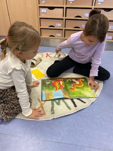 Im Rahmen der Lesebrücke besuchen die Kindergartenkinder regelmäßig die Schülerinnen und Schüler der dritten Klasse der Volksschule – über das Schuljahr verteilt finden mehrere Termine statt.