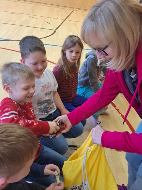 Sie stellte den Kindern der beiden ersten Klassen das Buch „Finja, ein Hund mit Herz und cooler Schnauze“ vor.