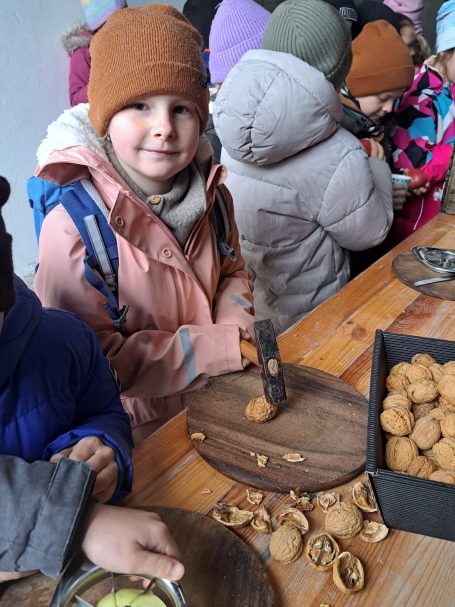 Zum Abschluss durften die Schüler:innen verschiedene Apfelsorten kennenlernen – und natürlich auch verkosten. Von süß bis säuerlich war alles dabei. Schnell wurden Lieblingssorten gekürt und viele Kindern staunten darüber, wie unterschiedlich Äpfel schmecken können. Außerdem bekamen sie Nüsse und Apfelsaft zum Probieren.